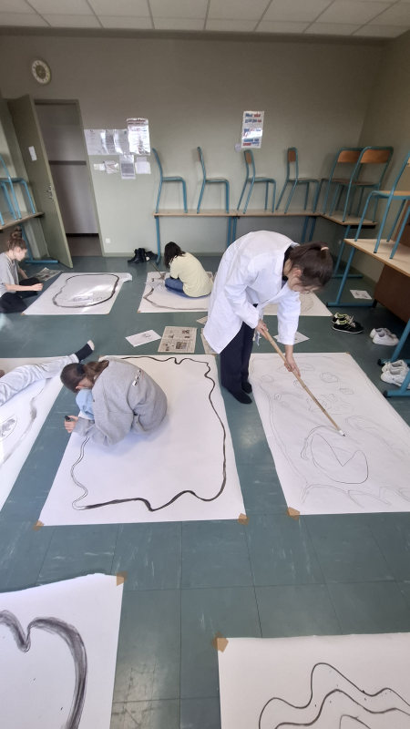 On a fait des brouillons, ensuite on est passés sur une feuille à grand format (150cm x 100 cm).
