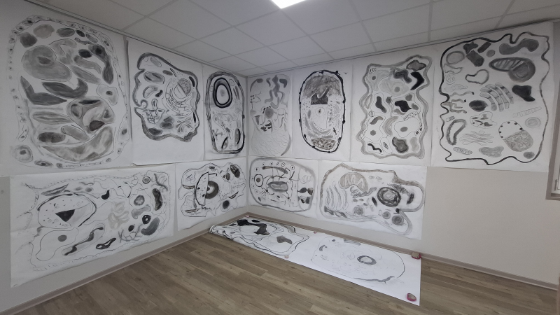 A Arty, on dessine et on a même rencontré l’artiste plasticienne Nadine Lahoz–Quilez. Nadine Lahoz–Quilez est une artiste venue de Saint Étienne qui dessine des cellules avec le crayon, le fusain et du charbon de bois.